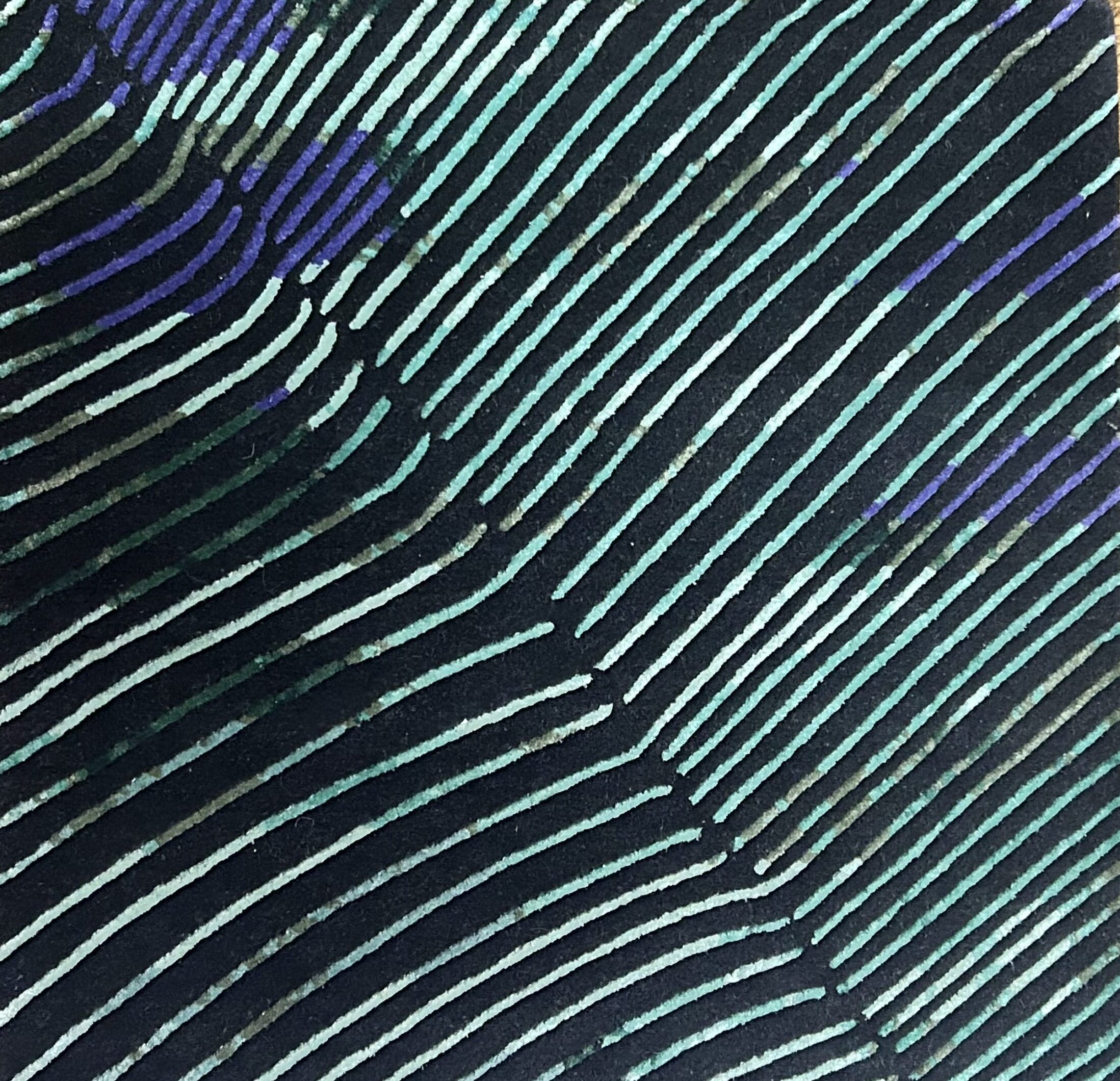 600 lignes / m² – Laines 50% Tibet, 50% Nouvelle Zélande, filées à la main, arasage & ciselure manuelle