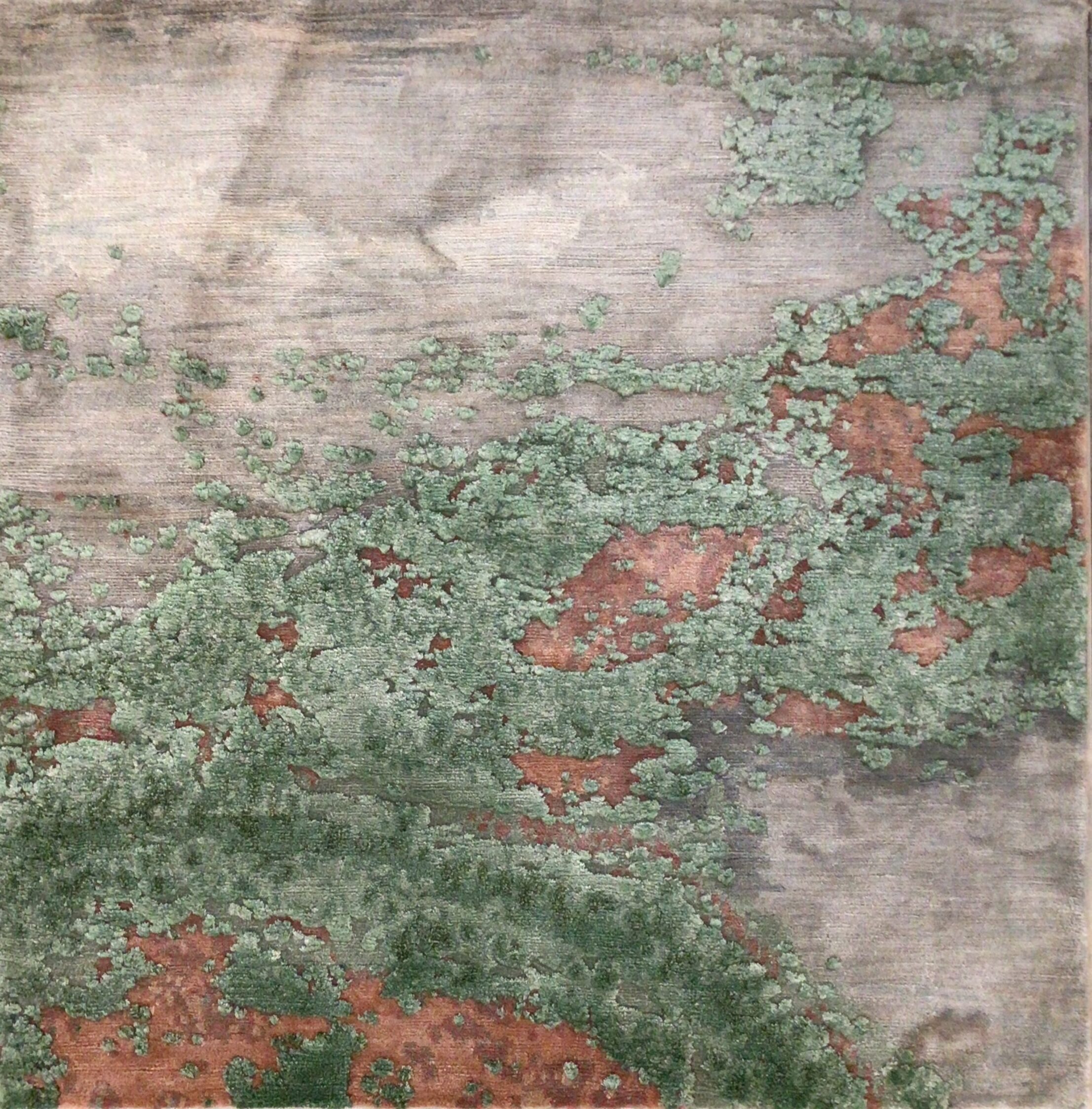 350 000 noeuds / m² – Laines 50% Tibet, 50% Nouvelle Zélande, filées à la main, noeud tibétain, arasage & ciselure manuelle